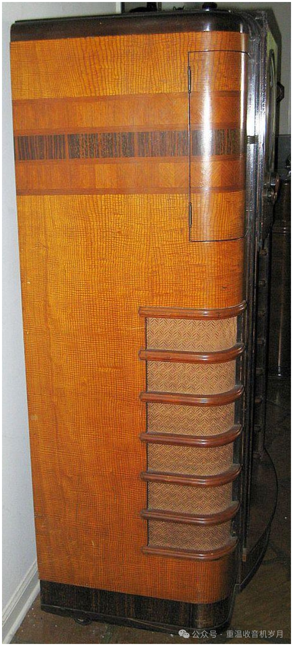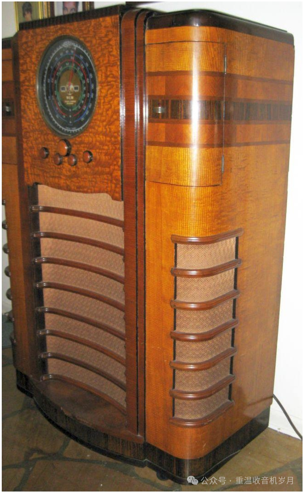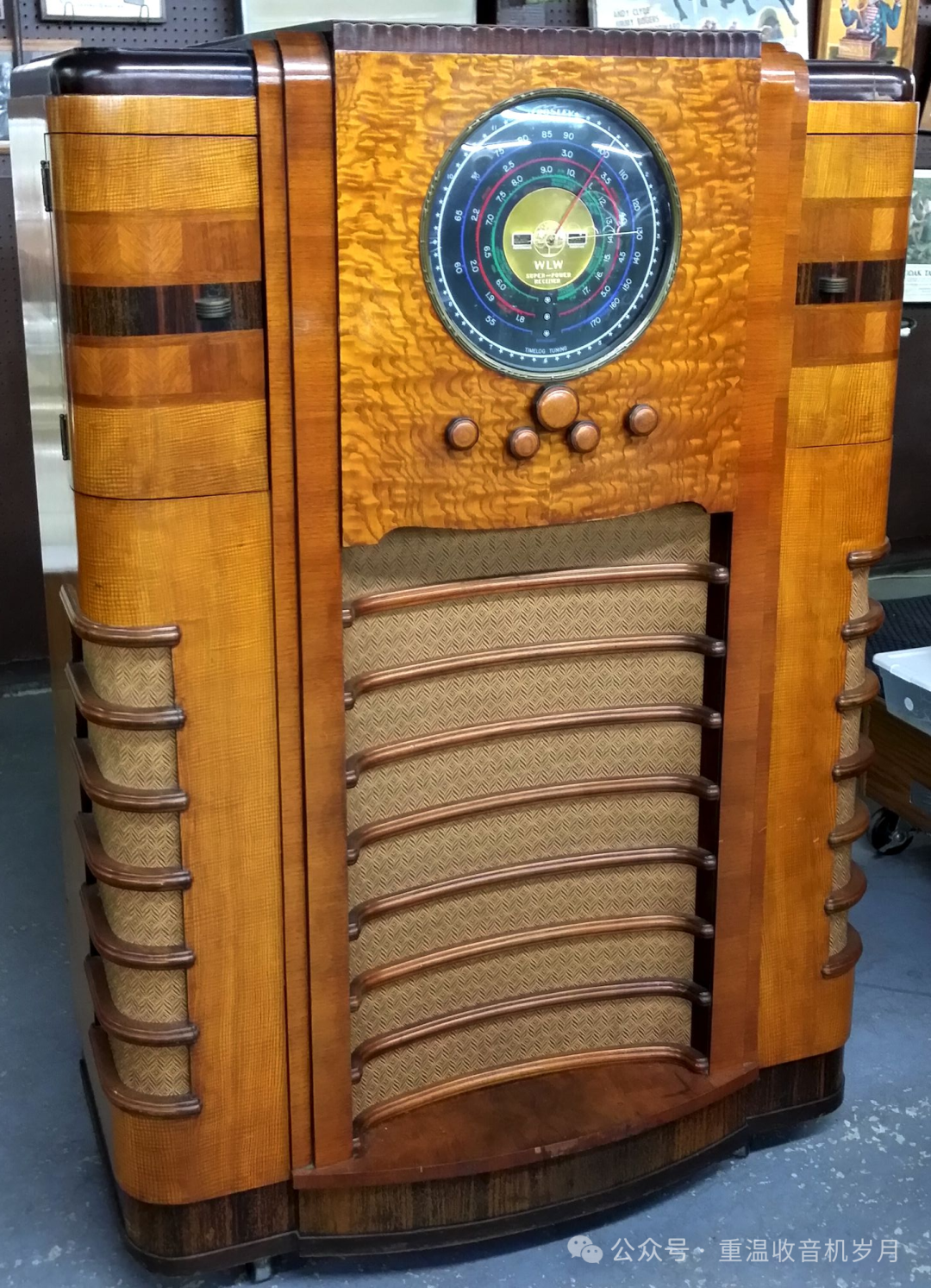 搭载37个真空管与6只扬声器(其中最大的扬声器直径为18英寸),这款由俄亥俄州辛辛那提市无线电制造商生产的收音机,是全球最大的收音机机型之一。该机高度近5英尺,重量达475磅。