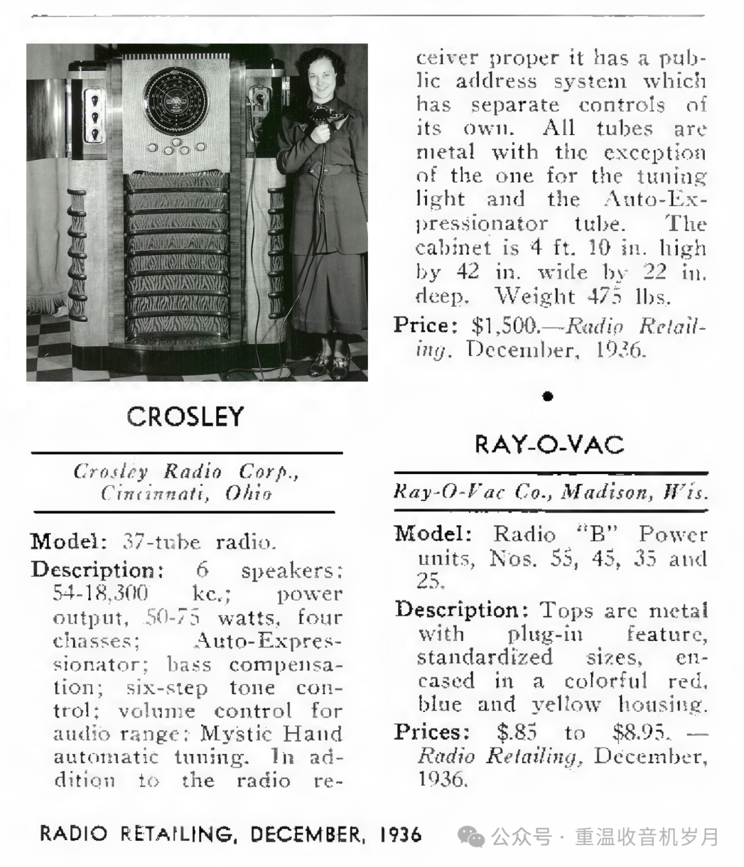 Crosley 37 管收音机介绍,来自《Radio Retailing》1936年12月号。