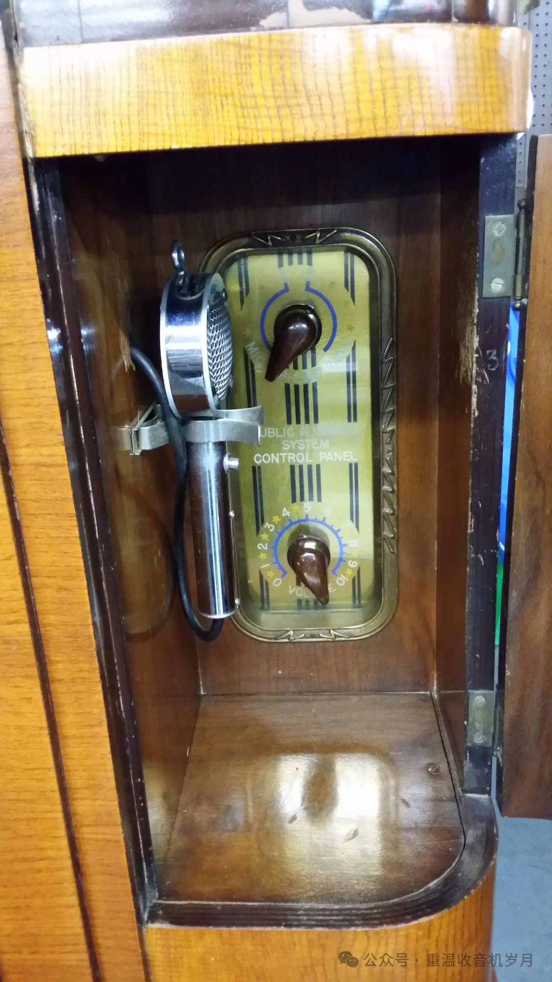 3. 辅助声道音量控制:除了可调节整个系统音量大小的主音量控制外,还有三个分别调节三个独立音频声道电平的控制旋钮。这些旋钮位于面板正面,收纳在机柜左侧检修门后的内部隔舱内,分别标注为低音(Bass)、中音(Mezzo)和高音(Treble)。