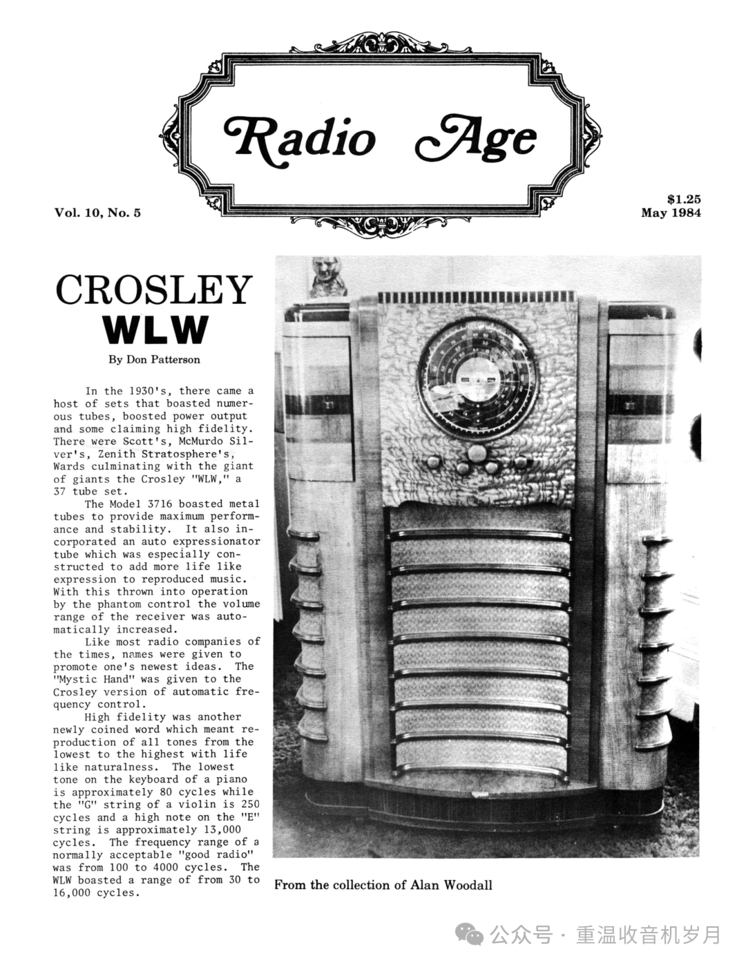 介绍Crosley WLW收音机的收藏回顾文章,来自《Radio Age》1984年5月号。主要内容翻译: