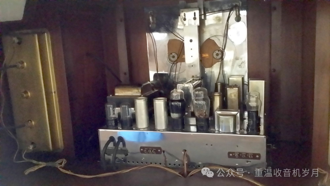 其中1只扬声器直径为18英寸,用于重放低音频段;两只12英寸扬声器负责中音频段;3只小型高频振膜扬声器负责高音频段的高音与泛音。除调谐指示灯用管与自动音效调节管外,所有电子管均为金属管。
