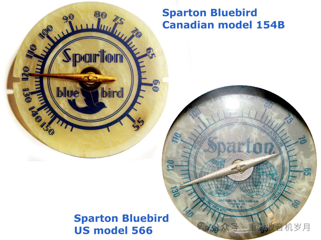 Sparton Bluebird及其复刻版对比表,来自www.radio-antiks.com/IndexRadio-Antiks_Sparton_154B_Bluebird.htm。