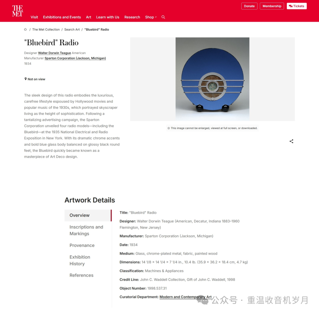 库珀·休伊特史密森尼设计博物馆收藏的Bluebird。