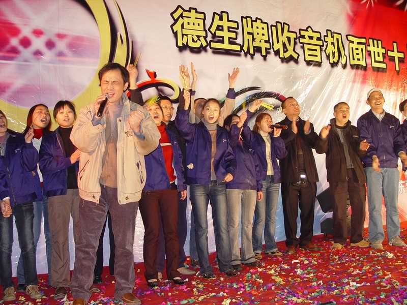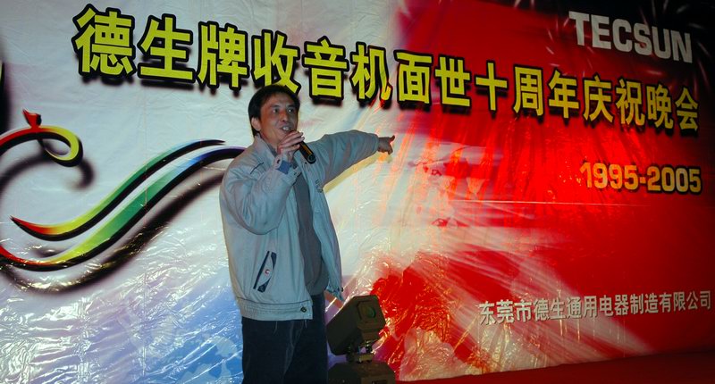 2005年12月23日,东莞市东城区火炼树景泰广场,德生牌收音机面世十周年庆祝晚会在这里召开。