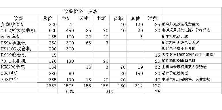从中可以看出,有些设备还是很超值的。而且从表中还可以看出,主机与附件价格基本是2:1,而运费则大致占主机的10%,由此得出结论:由于绝大多数交易均为二手设备,附件不可能很齐全,取得理想的附件可能需要花费相当的精力和财力,而且运费也是一笔说大不大说小不小的数目,购买者下决定前需要三思:)