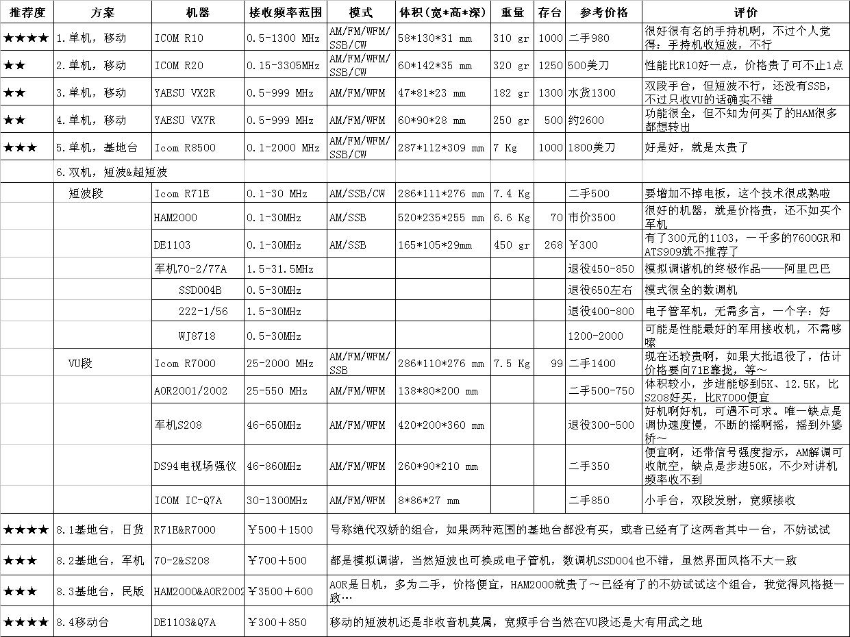 论接收,可以分为听广播、听电台、听信号,象我这种好奇心强的人,喜欢听信号,反映到机器上,就是频率、功能一定要全,什么都能听(广播、火腿通联、出租车调度、民航联络、JC对讲,甚至宾馆退房、二奶台、信标台,统统不放过,一个都不能少!)