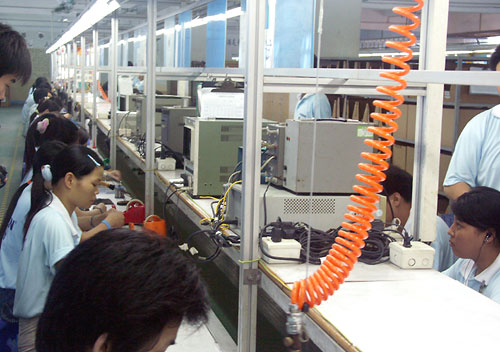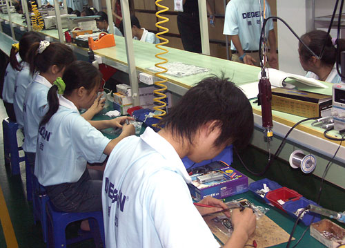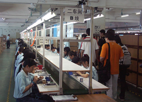 同时,为了让越来越多消费者认知德劲这个品牌,在到达德劲公司的第二天,作为媒体方面的代表,我们二十余人便直扑蛇口附近的德劲工厂,一同参观了德劲的生产线及装配车间,认真了解MP3及德劲收音设备从技术研发、原材料加工到最后成品的全部制作过程。
