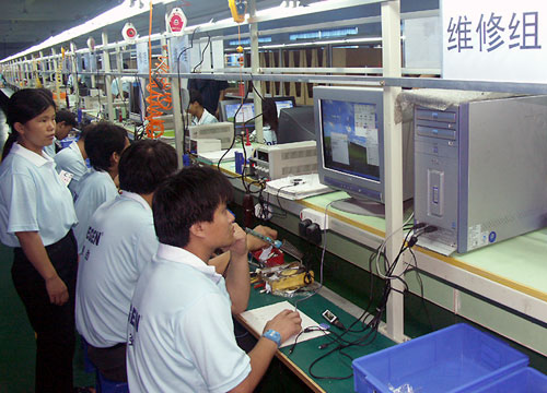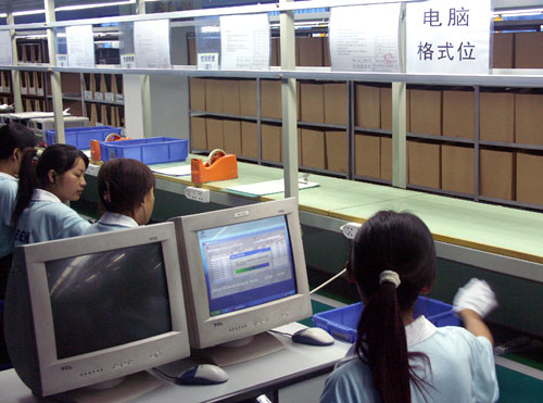 装配完好的电路在经过多种严格的测试之后,通过测试的机器便开始装上机壳。装上机壳之后,基本上机器的装配工作就完成了。