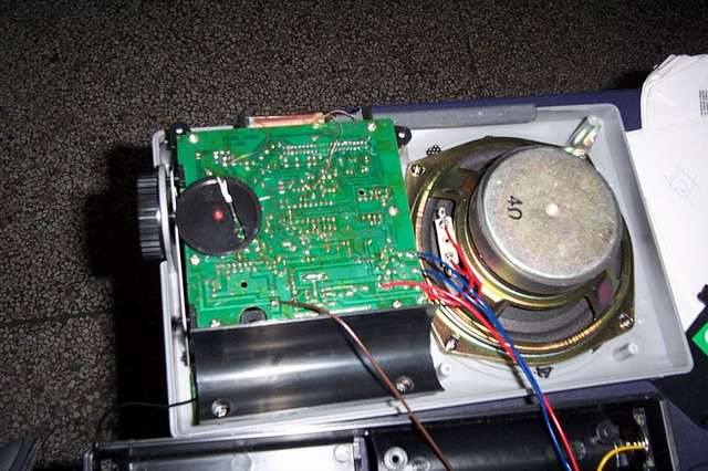 拆开祥察此机,整机机械结构还算令人满意,整个机芯浑然一体,偌大的扬声器给人信心,中波磁棒长达18厘米,再拆开线路板瞧,本机的中心器件是三洋著名的收音机芯片LA1260,FM高放处理使用东芝TA7358,而音频功放则为UTC2822M,工作于BTL方式,上面加了一个卡焊在线路板上的简易散热器,不愧为知名品牌厂家,散热器与UTC2822M之间涂有厚厚的散热硅脂,保证了UTC2822M的良好散热,但波段开关的周围看到了一堆排列有序的色码电感,看板上标注的文字,对应着短波的各个波段,我没有再详细研究这些色码电感使用于短波的输入回路,还是本振回路,我见过短波高频线路大量使用色码电感的收音机有两个,一个是冒牌的SONY收音机,一个是小地摊上买的15元一个的调频调幅多波段收音机,我不知道这些没有屏蔽的色码电感的使用是否是收音机技术的新工艺?看到805中的这些色码电感,我心里开始有了失望的感觉了...