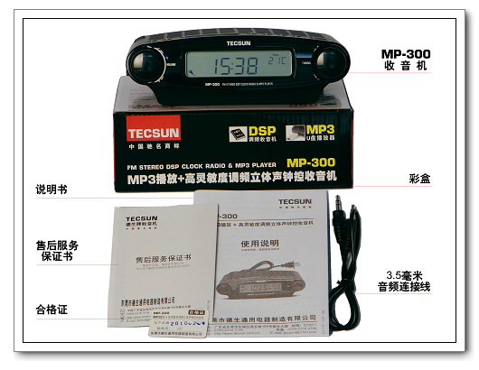 德生10年新机: MP-300 MP3播放+高灵敏度调频立体声钟控收音机