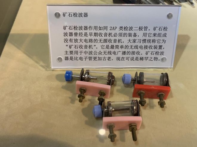 图注:玻璃管里一颗矿石构成矿石检波器。 戴辉摄