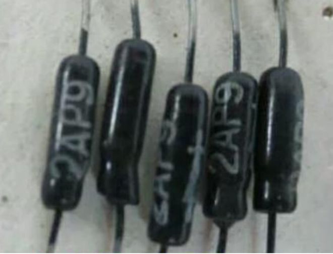 进入60年代后,晶体二极管开始出现,渐渐取代矿石成为了矿石收音机的检波器,多为锗晶体二极管,通常用2AP9等型号。中学生和无线电爱好者大量采用。“没有电烙铁就用烧得通红的煤炉勾子加上焊锡膏焊接”。