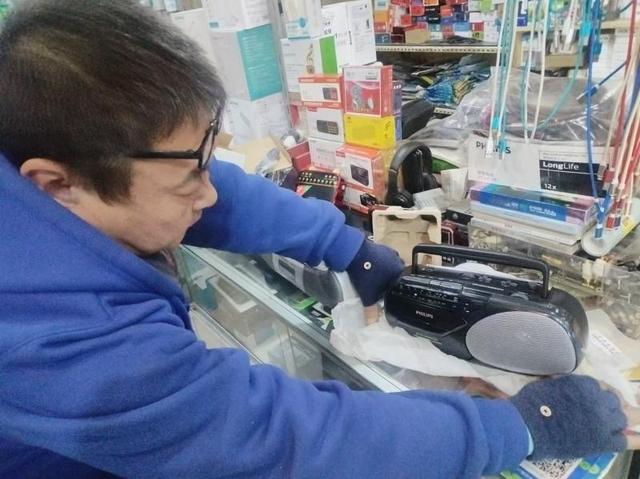 韩红平今年53岁,他的日新电脑电修理店主营“小家电维修、遥控器、电脑配件”,走进这家不大的店铺,可以看到四周都堆满了充满时代感的小家电,柜台上挂的是各种收音机,货架上放着DVD播放机,柜台里摆满了各式遥控器,每组遥控器都被细心地放在一个小袋子中,在这里甚至还可以淘到一些老DVD光盘。