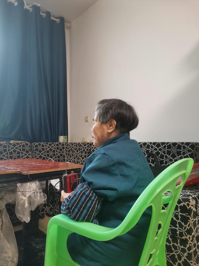 陈中英从小双目失明,老伴去世12年,两个女儿出嫁,独自一个人居住的她跟电台互动成了她最大的乐趣。
