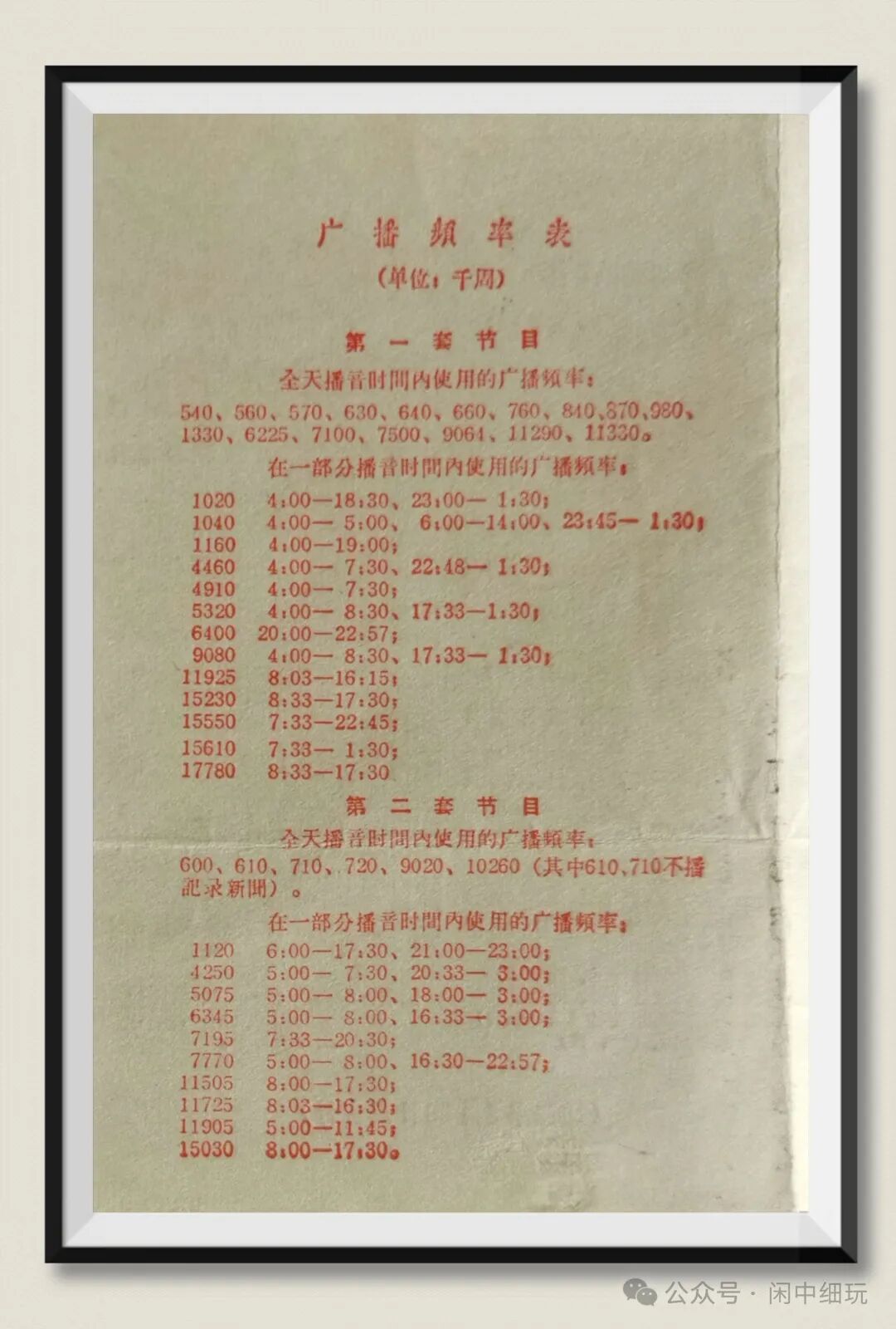 上图之四中广播频率表详细列出不同波段的播出时段,说明当时广播覆盖存在技术限制,需通过多频率、分时段确保城乡不同地区接收。尤其在偏远农村,收音机普及率低,广播主要依靠集体喇叭播放,频率选择直接影响传播效果。这反映出国家在意识形态“全覆盖”上的努力与现实技术条件之间的局限——即便在政治动员最激烈的年代,传播仍受限于物质基础。
