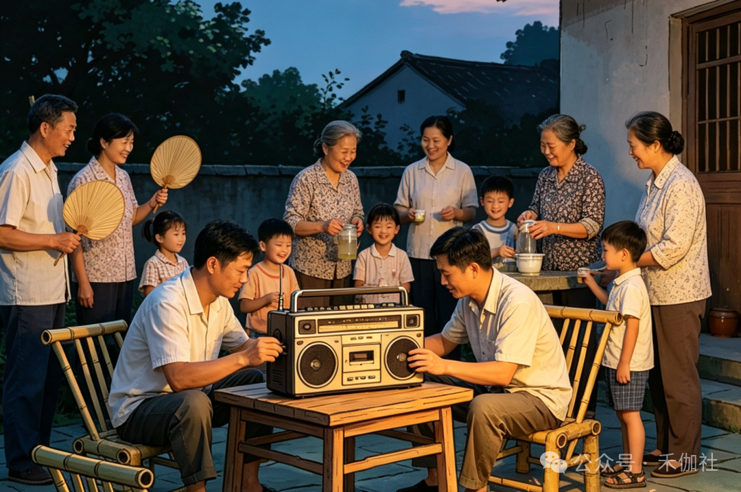 乡亲们搬来自家的小板凳,摇着蒲扇,三三两两围坐在一起,就等着舅舅拧开收音机。评书里的侠义故事扣人心弦,戏曲唱段婉转悠扬,时事新闻新鲜有趣,声音从小小的喇叭里传出,传遍整个村落。