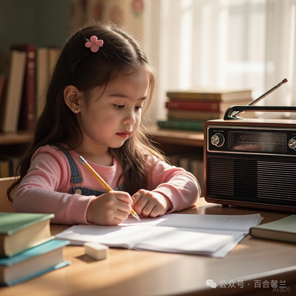 广播剧里,播音员的声音清晰准确,故事情节也深深记在脑海里,写作文的时候可以用上。