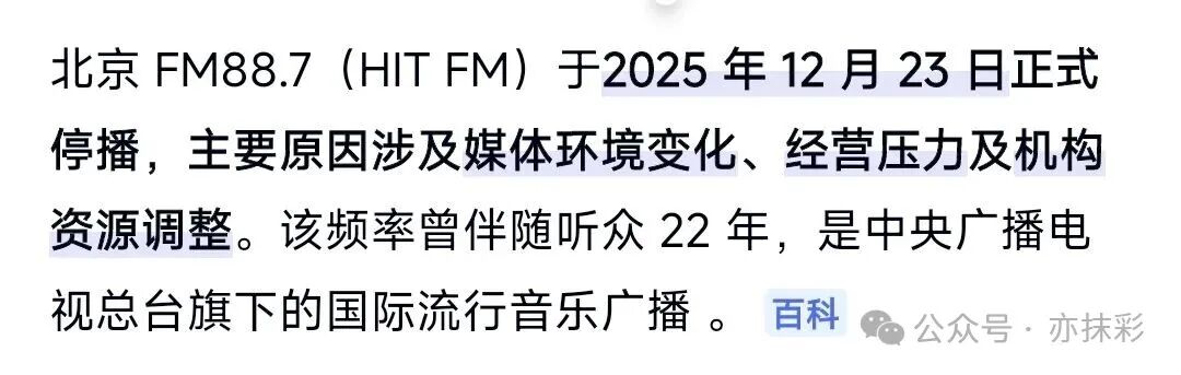 看到这个消息的时候,说不上什么感觉。不是惊讶,也不是难过,就是觉得——啊,原来真的过去了。那个曾经24小时都在的频率,终究还是成为了历史。